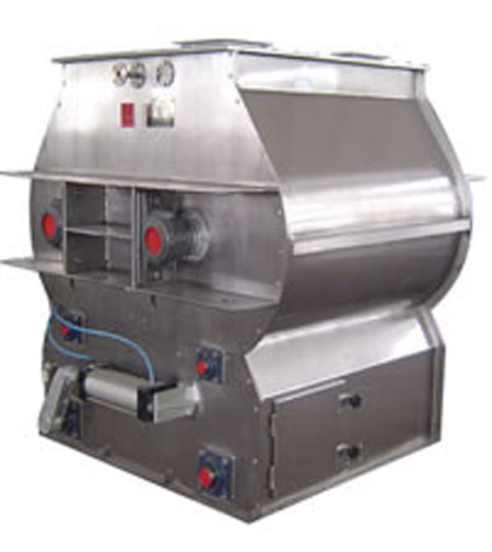 流動層混合。由于葉片的反向轉動,在一定轉速下使混合室內產生流動層,造成移送的粉粒體和其他粒子充分接觸,當粒子的重力和離心力相等時物料處于瞬間失重狀態,此時混合效果與物料粒徑、形狀、表觀密度無關,并在極短時間內得到均勻混合物。